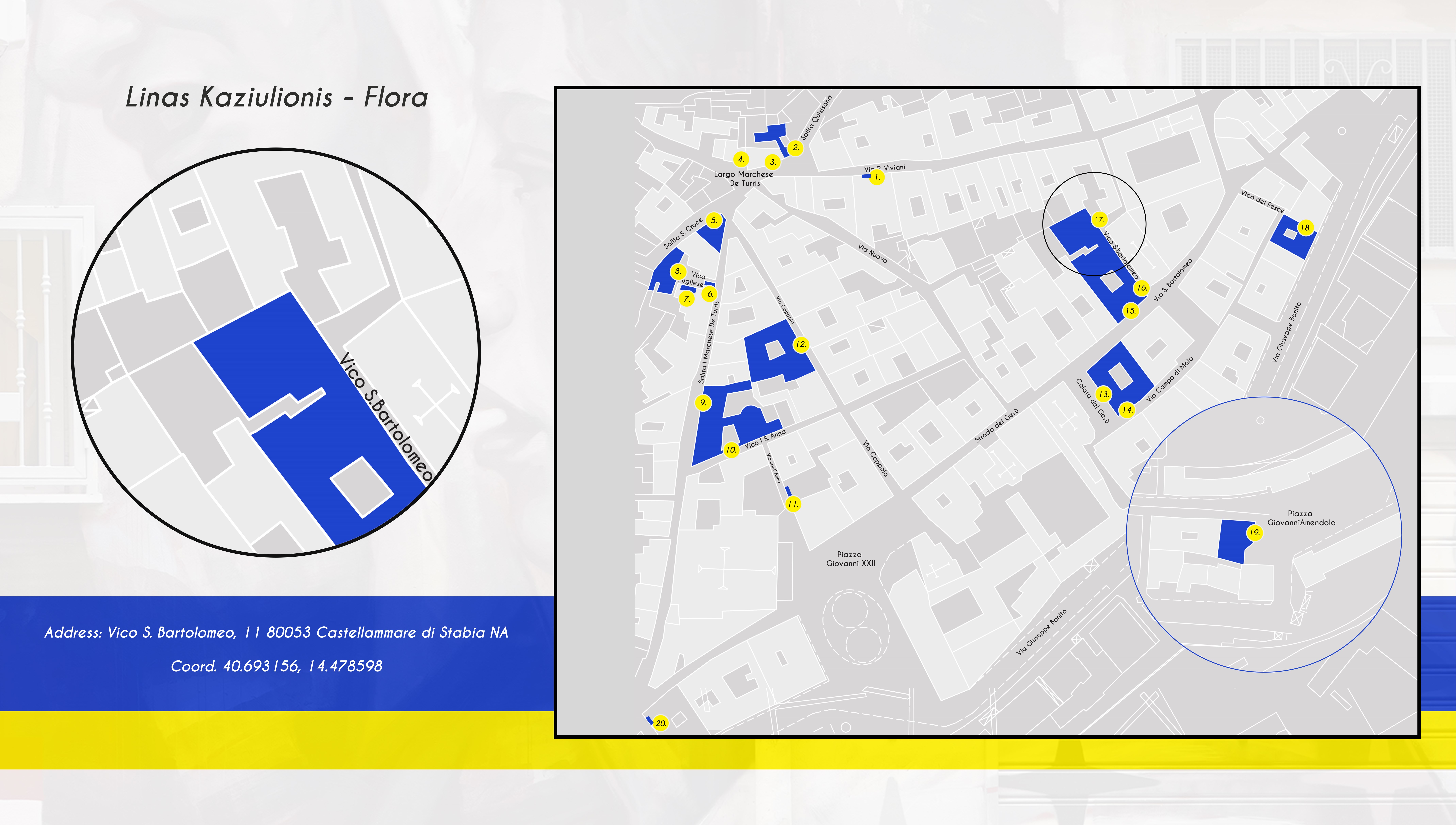 “L'affresco sullo sfondo proviene da Stabia villa Arianna e in cima puoi vedere la scultura della dea romana Flora, un affresco di lei che può essere trovato anche a Stabia.” – Linas Kaziulionis